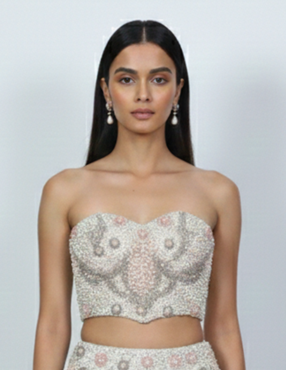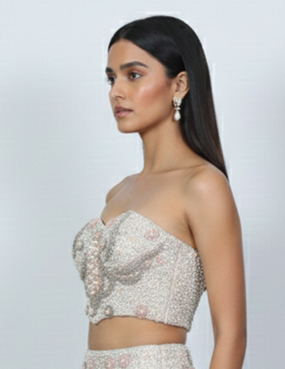 - Design: Strapless sweetheart corset with a softly sculpted neckline and cropped silhouette that highlights the waistline.